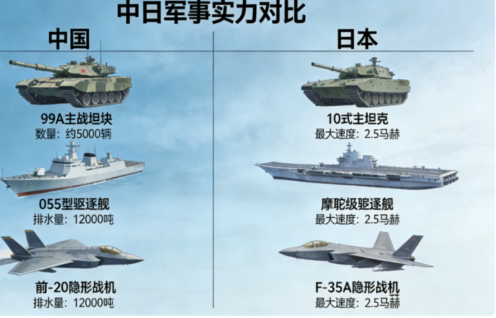 中国的核心优势:在兵力规模、体系化作战能力、战略威慑力量、国防工业体系、自主指挥权等核心维度拥有绝对优势,海军、空军、陆军均形成全域攻防体系,核威慑和常规远程打击能力是日本不具备的 “战略底牌”,且国防潜力和动员能力远非日本可比;